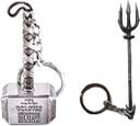 Deethyas Fashion Pack of 2 Thor Hammer Big Size & Aquaman Trident Design Long Size Metal Key Chain