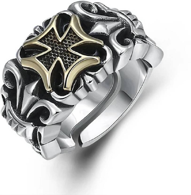 Deevam Cross Silver Plated Finger Retro Wide Size Rings For Men & Boys Metal Ring