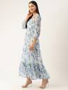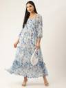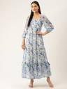 Deewa Women Fit and Flare Blue, Light Green, White Maxi/Full Length Dress