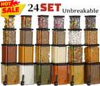 Defex Plastic Grocery Container - 1400 ml, 900 ml, 650 ml, 350 ml (Pack of 24, Black)
