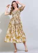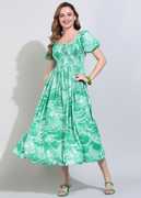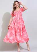 Easy and elegant, this skater dress to give your closet an effortless sartorial update. Tailored in a swiss dotted fabric, the dress features a smocking detail and ruffles along the hem .it come with short puff sleeves. Style Tip: Complete the look with heels and a ting sling.