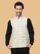 Material: Woolen Handloom, Pattern: Block Check, Type: Nehru Jacket/Waistcoat, Length: Waist length, Sleeve: Sleeveless