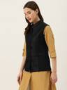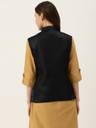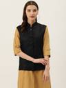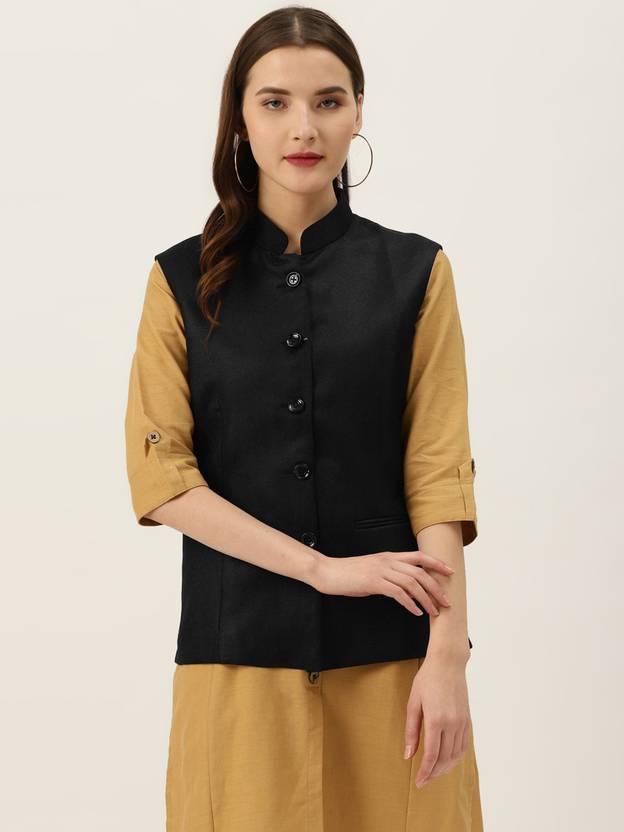Nehru Jackets enhance the look for all occasions! Be it get-together, weddings, party, dinner dates or a casual met up, dress up in these precisely crafted jackets that come in a mix of royal colours, finest fabric, Well fitted and elegant. Paired with Kurta, suit or Formal Trousers. This Women Nehru jacket Featuring contrasting buttons on the placket, welt pockets and a simplistic design.