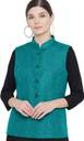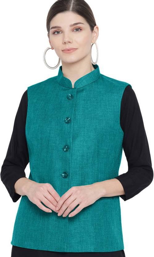 Nehru Jackets enhance the look for all occasions! Be it get-together, weddings, party, dinner dates or a casual met up, dress up in these precisely crafted jackets that come in a mix of royal colours, finest fabric, Well fitted and elegant. Paired with Kurta, suit or Formal Trousers. This Women Nehru jacket Featuring contrasting buttons on the placket, welt pockets and a simplistic design.