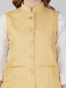 Nehru Jackets enhance the look for all occasions! Be it get-together, weddings, party, dinner dates or a casual met up, dress up in these precisely crafted jackets that come in a mix of royal colours, finest fabric, Well fitted and elegant. Paired with Kurta, suit or Formal Trousers. This Women Nehru jacket Featuring contrasting buttons on the placket, welt pockets and a simplistic design.