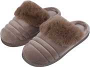 ELEGANT UPPER DESIGN: a pair of cozy, chic and elegant men slippers. Slide on easily wear on and off. WARM & COMFORTABLE: Using soft faux fluffy fur wraps your feet for warmth and comfort. Eco-friendly thick plush fleece and breathable fur keeps away from coldness and give you a soft and dry touch. QUALITY RUBBER SOLE: Anti-skid texture in the bottom gives you safe and secure footing and prevents from scratching the floor, waterproof and anti-slip soles absorbs noise while walking on the floor. FOAM: High density foam with shock-absorption EVA offers lasting marshmallow-like comfort and warmth for tired toes and heels, relieves pain and pressure after a long day hard work. GOOD GIFT CHOICES: These stylish slippers fit standard foot size and available in many designs. Chic and elegant slippers is also a great gift idea for girl friend, mother and co-workers to pamper them.