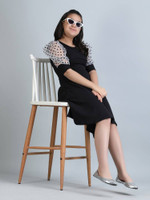 Deklook Girls Midi/Knee Length Casual Dress (Black, 3/4 Sleeve)