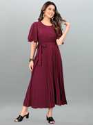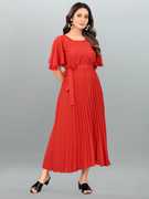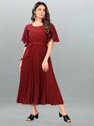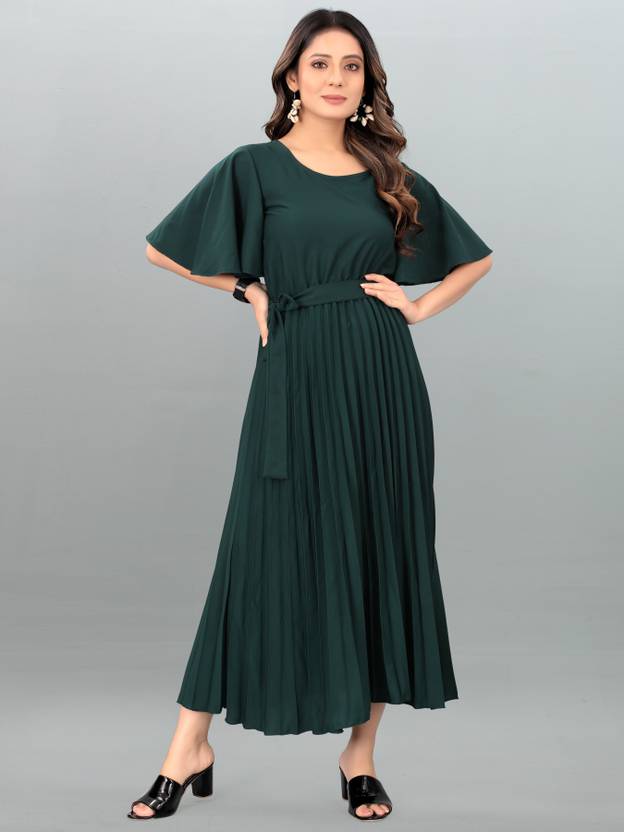 Deklook Women Pleated Dark Green Midi/Calf Length Dress