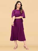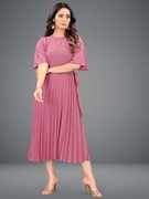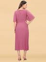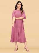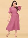 Deklook Women Pleated Pink Midi/Calf Length Dress