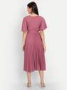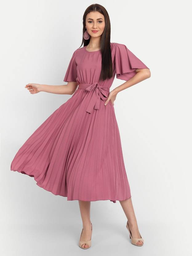 Deklook Women Pleated Pink Midi/Calf Length Dress