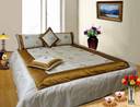 Dekor World Butterfly Embroidery Quilt Collection Polyester, Pure Silk King Sized Bedding Set (Gold, Beige, Quilt-230x250cm/90"x100"-1 Pc, Pillow Cover-45x70cm/18"x27"-2 Pcs, Cushion Cover- 40x40cm/16"x16"-2 Pcs)