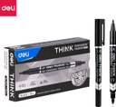 Deli THINK Double Tip Permanent Marker (Set of 12, Black)