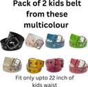 Add a splash of color to your child’s wardrobe with this fun and functional pack of 2 multicolor kids' belts. Designed for waist sizes up to 22 inches and 1 inch wide, these belts are made with durable, kid-friendly materials. The vibrant grommet holes and sturdy buckle make them not only stylish but also practical for everyday wear. Great for school, casual outings, or gifting!