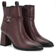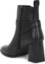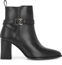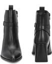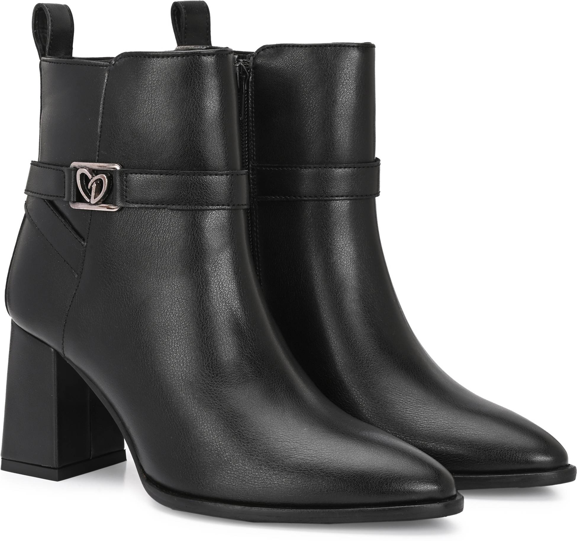 Black women vegan leather high heel long boots with metallic zip and metal logo ankle strap. Inside zip to wear easily. Fabric lining and memory foam insock for ultimate comfort.