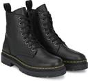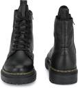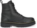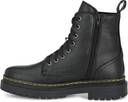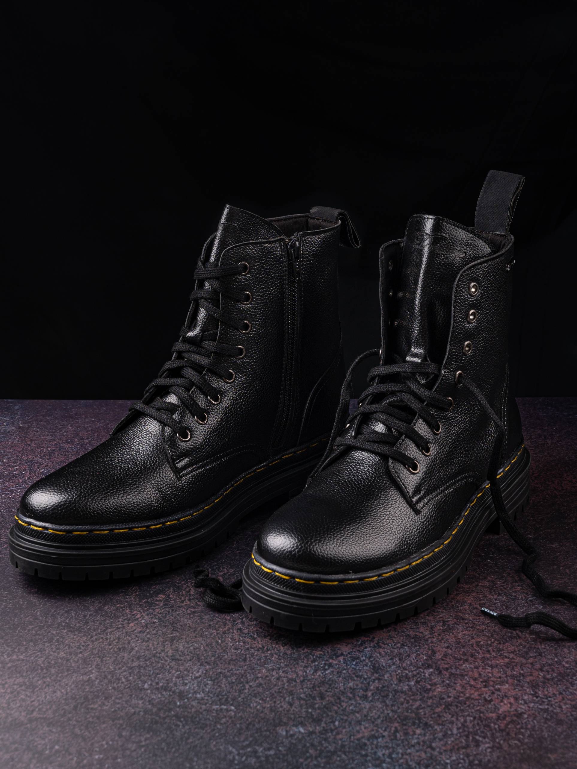 Black men vegan leather, derby boots with track outsole and back loop detail. Eight ilet facing. Fabric lining and memory foam insock for ultimate comfort.
