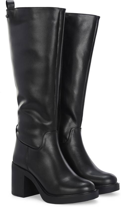 Women’s flat black knee boots made in synth. leather with leather detail around the ankle and inside zip. Fabric lining and memory foam insock for ultimate comfort.