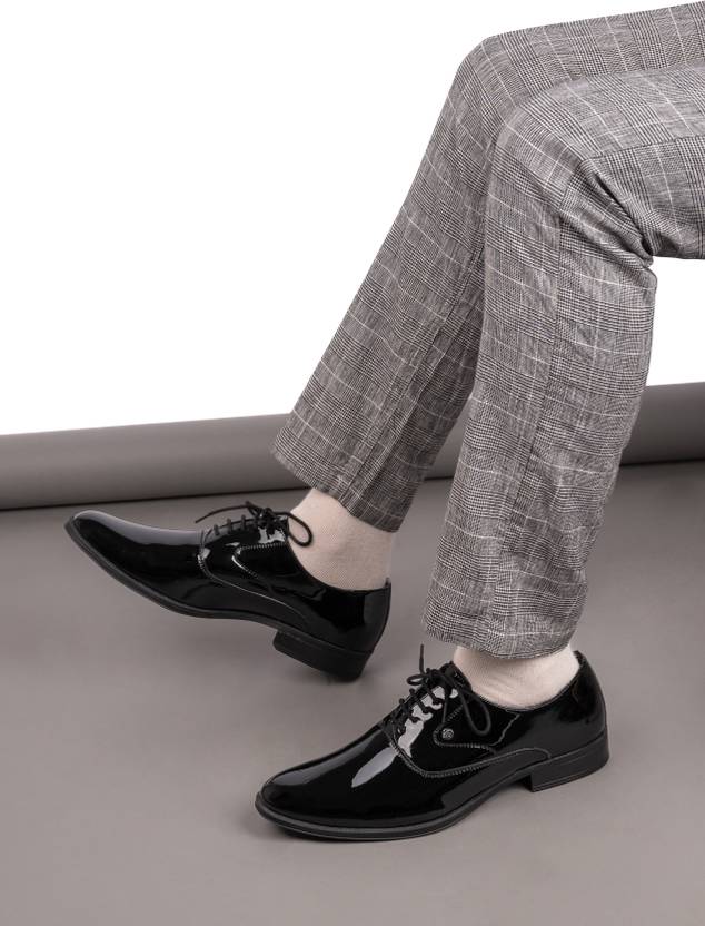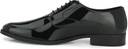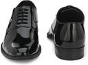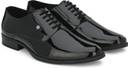 Men black patent vegan leather derby formal shoes for all occasions. Five blind eyelets facing. Has fabric lining and memory foam insock for ultimate comfort.