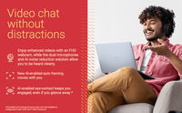 Enjoy crystal-clear video with an FHD webcam, and be heard clearly, using dual microphones and AI noise reduction. AI-powered engagement (Intel Core Ultra Processors only) features auto framing, which keeps you centred as you move, and eye contact correction, which maintains engagement even if your gaze shifts.