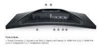 Featuring a wide variety of ports and slots, such as a power connector, security lock slot, stand lock, dual HDMI 2.0 ports, DisplayPort, and headphone out port, this monitor makes it easy to connect different devices and peripherals.