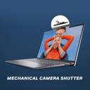 The mechanical privacy camera shutter with (SSO) fingerprint reader on the power button provides an instant access login experience.