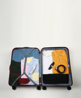 Sporting two packing compartments, this suitcase incorporates tie-down straps on one side and a zippered divider equipped with a mesh pocket on the other side. These thoughtful additions work together to reduce the chance of content shifting during your journey.