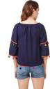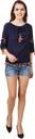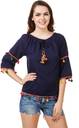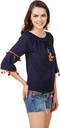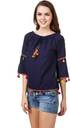 Delux Look Casual 3/4 Sleeve Embroidered Women Blue Top