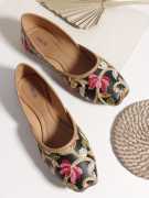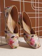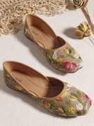 Add a touch of traditional elegance to your look with these beautifully handcrafted embroidered ethnic bellies. Featuring colorful threadwork on a soft cream base, these flats are perfect for festive occasions, weddings, and ethnic outfits. Designed for comfort and charm, they offer a snug fit with cushioned insoles and durable soles. Pair them with your lehenga, suit, or saree and steal the spotlight effortlessly!