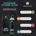 It is impossible to put up a show of being fresh, confident and recharged when your genital area is inducing immense discomfort, a putrid odour and uneasiness due to unwanted secretions. There, we said it. Keeping the fast paced lives of today???s man in consideration, we at Bliss of Earth are gung-ho to present to you a gentle refreshing genital cleanser for men with Bliss of Earth products going into its making. Nothing more.Nothing less.Just organic ingredients ??? wholesome, pure and potent. Our alcohol-free formula of Den of Men restores genital skin???s natural acidic pH level in addition to reducing irritation by nipping those germs in the bud that foment unpleasant odour and itching. Given the plethora of problems men have to put up with right from irritation caused by perspiration to a discomfiting genital release to bacterial growth leading to a foul stench, Den of Men tackles them and how! From rashes that develop in the groin due to ringworm or attack by yeast to boils, lesions, blisters and what not, taking care of your private parts will be a piece of cake for all the men out there beset by such skin woes. Neutrally balanced at pH7 Den of Men Daily Active Masculine Hygiene Wash is incredibly gentle on your pubic region just like pure water. From removing a foul stench to preventing irritation, itching and bacterial/fungal infections, our Masculine Hygiene Wash moisturises your genital region leaving you cool, fresh and perked up throughout the course of the day.