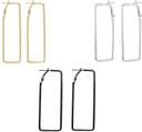 RECTRAINGLE SILVER GOLDEN GUNBLACK HOOP Earring 3P