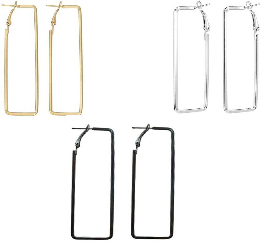 DENICRAAS Rectangle Framed Stud Golden silver gunblack Hoop Earrings combo 3p Metal Earring Set