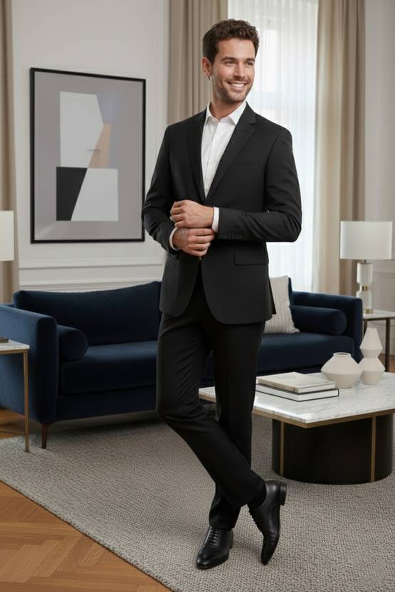 Elegant Black Solid Suit Ideal for both formal and party wear