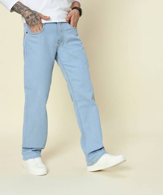 DENIM LOOK Men Jean's Modal Height: 6'1.5 Our model is 1.90m (6ft 1.5in) Chest :40 Waist : 32 Hips : 38 (Length : 40.5) and is wearing a size 32, Style: Baggy Cargo, Fit: Loose Fit Relaxed Fit, Fabric: Stretch Denim, Length -(40.5 inches) Regular, Slate Light Blue Baggy Loose Fit Regular Straight Pattern Jeans