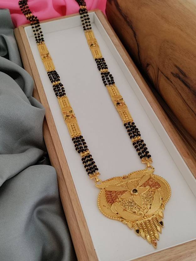 Link Types: The chain of the Mangalsutra may have different link styles, such as curb, cable, or beaded links., Polish: The Mangalsutra may have different types of finishes, such as matte, polished, or oxidized, giving it a unique aesthetic., Lightweight vs. Heavy: The weight of the Mangalsutra can vary based on individual preferences. Some may prefer a lightweight design for everyday comfort, while others may opt for a more substantial piece., Affordability: Brass Mangalsutras are generally more affordable compared to those made from precious metals like gold. This makes them accessible to a broader range of individuals.