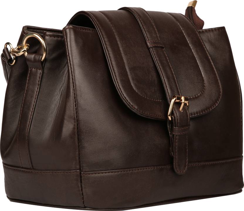 Glam up your look by carrying this smart and elegant sling bag from Roseberries which is made from premium faux leather. The beautiful flap pocket in the front adds to its glamour and utility quotient. Golden metal accessories make the bag even more attractive and eye-catching. This bag will allow you to stuff all your essentials with ease.