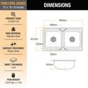 DENMARK DENMARK SS Double Bowl Kitchen sink Sink_37X18X8 Inches With Accessoseries Coupling & Ajustable Pipe Vessel Sink (Silver)