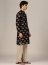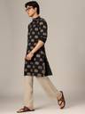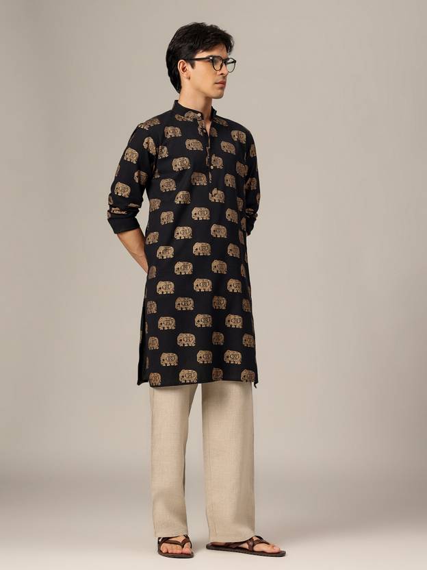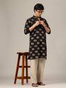 Men Block Print Pure Cotton Straight Kurta (Black)