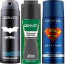 DENVER BATMAN "URBAN LEGEND" edition imbibing the spirit of greatest defender of night. It is a magnetically attractive fragrance which is fresh with a sensual blend of sparkling grapefruit and orange::Extreme conditions demand Performance. DENVER Extreme inspired by the real men, with sweat defence technology powered by T.E.C., which is upto 2 times more effective in fighting sweat odour from bacteria::The DENVER Superman Strength deodorant is a woody aromatic fragrance. It aims at ambitious young men who realizes their aspiration and strives for new challenges.It has powerful top notes and elegant base is perfect for those who reveal in being in control
