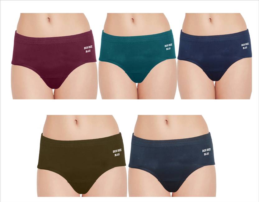 Pack of 5 Women Bikini Maroon, Dark Green, Dark Blue, Light Green, Grey Panty