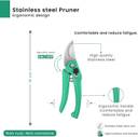 Equipped with sharp stainless steel blades, these pruning shears offer precision cutting performance. The blades are durable and resistant to corrosion, ensuring long-lasting sharpness and reliability. Their sharp edge effortlessly cuts through branches, stems, and twigs, promoting healthy plant growth with clean cuts that minimise damage. Stainless steel construction also makes the blades easy to clean and maintain.