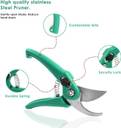 These pruning shears are designed with a curved blade that facilitates precise cuts, particularly in tight or hard-to-reach areas. The curved blade allows for better visibility and control, ensuring accurate pruning without damaging surrounding foliage or branches. Its ergonomic design also reduces hand fatigue, making prolonged pruning sessions more comfortable.