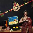 The rakhi included in this set features a sophisticated design that combines traditional elements with modern aesthetics. Beautifully crafted, the rakhi in this set is adorned with intricate patterns and embellishments that add a touch of elegance to the festive celebration. Its timeless design makes this set a cherished keepsake that symbolises the strong bond and love shared between siblings.