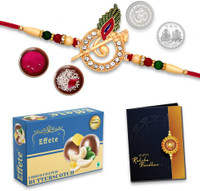 You can make your celebrations memorable with this comprehensive rakhi set. It includes everything you need for the traditional ritual, ensuring a heartfelt, meaningful exchange between siblings. This set comprises a beautiful rakhi, roli and chawal for the auspicious tilak ceremony, a heartfelt greeting card to convey your emotions, delightful chocolates to sweeten the occasion, and a symbolic coin representing blessings and prosperity.
