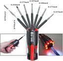 Warning: If you want to buy original high quality product then you have to buy from original supplier VIP Global Exim of 8 in 1 screwdriver set. Beware of duplication of the products Buy Original Features * New and high quality 8 in 1 Screwdriver set By VIP Global Exim * Integrated torch for use on its own or to illuminate working area when using the screwdrivers * Magnetic CRV steel alloy heads * Extra heavy duty screwdriver locking mechanism * Electrically insulated heavy duty handle & screwdriver stems * Handy clothes clip * Lightweight, compact design * Please do not put it directly to people´s eyes for the powerful light is harmful and it will make you blind, especially for the kid Specifications Light Model: LED powerful torch LED: 6 Power Supply: 3 x AAA batteries (not included) Screwdriver Type: T4, T5, T6, T7, T8, T9, T10, T15 Body Color: Black Weight : 8.05 oz Dimensions: 8.27" x 1.57" (L x Dia.) Package Includes 1 x 8 in 1 Multi Portable Screwdriver Tools Set with 6 LED Flashlight Torch