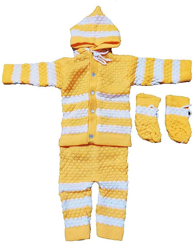 Depurika Baby Boys & Baby Girls Casual Sweater Bootie, Pant, Cap, Socks (DP Yellow-White)