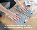 Dermadry is an iontophoresis machine designed to treat excessive sweating (hyperhidrosis) of the hands, feet, and underarms. Our anti-sweat device is designed with simplicity, safety, and efficiency in mind, to allow users to attain their desired dryness from the comfort of their home. Dermadry is a user friendly devise for the treatment of Hyperhidrosisto treat excessive sweating by directing a mild current through the skin, with treatment sessions for 15-20 minutes and can provide up to 6 weeks of dryness. *Live confidently sweat-free. *Proven results: 98.3% success rate *Recommended by dermatologists. *Get up to 6 weeks of dryness. *Aluminum-free and latex-free. Includes: Acrylic case(2), controller, Silicon Mat (2), Underarm Electrode (2), Under arm pockets(4), AC adapter + Blade, cables (Pair), Operating manual