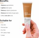 The cream contains carefully selected ingredients that facilitate gentle exfoliation. These components remove dead skin cells. By effectively removing dead skin cells, the cream stimulates the skin's natural renewal process. This promotes the generation of new, healthy skin cells. Removing the barrier of dead skin cells enhances the absorption of active ingredients in the cream. This means the potent components can penetrate the skin more effectively and maximise their impact on reducing pigmentation and promoting an even skin tone. Also, dead skin cells can sometimes trap pigments, leading to uneven skin tone. The cream's exfoliating action aids in addressing this concern by promoting a more uniform distribution of pigmentation.