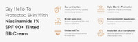 The BB cream offers several advantages over just sun protection. The cream addresses a range of skincare issues for a healthier, more radiant complexion, from minimising oxidative stress and lowering tanning and dullness to controlling sebum production. The BB Cream is a multipurpose addition to your everyday skincare regimen since it contains ingredients like IBR-TCLC in jojoba oil and niacinamide, which provide complete care that protects, nourishes, and enhances the texture of your skin.