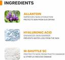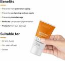 The sunscreen is designed to offer more advantages than just UV protection. It protects your skin from damaging UV radiation, avoiding pigmentation, sun spots, and tanning. It also guards against premature ageing and photodamage, keeping your skin looking young and glowing. In addition to minimising wrinkles and fine lines, sunscreen helps keep skin hydrated. The sunscreen keeps your skin healthy and robust to the sun by nourishing it with ingredients including M-Shuttle SC, hyaluronic acid, and allantoin.