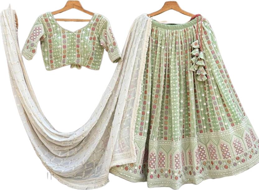 Lehenga choli detail Lehenga Choli Fabric Lehenga Fabric :- Georgette Choli Fabric:- Georgette Dupatta Fabric:- Georgette Lehenga Choli Inner:- Raw Micro Silk Lehenga Choli Work:- Sequence 5mm, Multi Niddle Work, Embroidery Work, Zari Work Lehenga Choli Stitching Type :- Lehenga Semi Stitched , Blouse Unstitched
