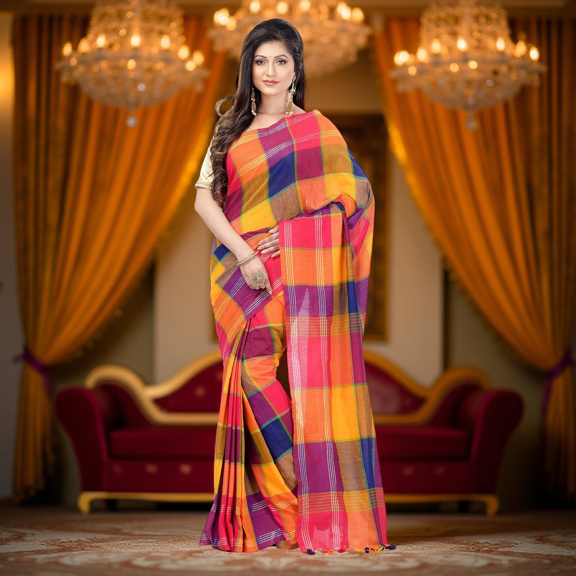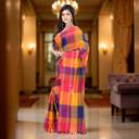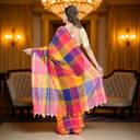 Soft and breathable cotton saree for women yellow and blue tones, crafted from pure cotton saree sky blue color fabric, suitable for all-day comfort in Indian weather., Elegant multicolor checks inspired by sky blue saree cotton, cotton saree blue color, and cotton saree sky blue color, reflecting traditional khadi cotton saree blue weaving style., Versatile shade combination resembling light blue cotton saree, dark blue cotton saree, royal blue saree, and navy blue cotton saree, ideal for daily wear and casual functions., Suitable for styling as blue saree party wear, navy blue sarees for women, or even a simple dark blue saree farewell look with minimal accessories., Comfortable cotton saree blue option for regular use, offering the grace of blue cotton silk saree look while maintaining softness of sarees for women cotton pure fabric.